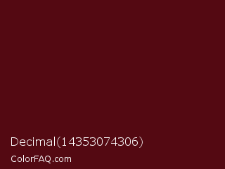 Decimal 14353074306 Color is a very dark red color and the nearest color is Maroon Oak #520c17. Hex code #540912 and RGB value is rgb(84,9,18). In RGB color space, this color is composed of 33% red, 4% green, 7% blue, In CMYK color space, this color is composed of 0% cyan, 89% magenta, 79% yellow , 67% black , In HSL color space, this color has a hue angle of 353° , 81% saturation and 18% lightness.