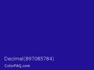 Decimal 897085784 Color is a normal indigo color and the nearest color is Blue Gem #2c0e8c. Hex code #221196 and RGB value is rgb(34,17,150). In RGB color space, this color is composed of 13% red, 7% green, 59% blue, In CMYK color space, this color is composed of 77% cyan, 89% magenta, 0% yellow , 41% black , In HSL color space, this color has a hue angle of 248° , 80% saturation and 33% lightness.