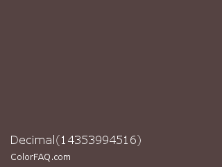 Decimal 14353994516 Color is a dark red color and the nearest color is Emperor #514649. Hex code #554342 and RGB value is rgb(85,67,66). In RGB color space, this color is composed of 33% red, 26% green, 26% blue, In CMYK color space, this color is composed of 0% cyan, 21% magenta, 22% yellow , 67% black , In HSL color space, this color has a hue angle of 3° , 13% saturation and 30% lightness.