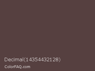 Decimal 14354432128 Color is a dark red color and the nearest color is Matterhorn #4e3b41. Hex code #564040 and RGB value is rgb(86,64,64). In RGB color space, this color is composed of 34% red, 25% green, 25% blue, In CMYK color space, this color is composed of 0% cyan, 26% magenta, 26% yellow , 66% black , In HSL color space, this color has a hue angle of 0° , 15% saturation and 29% lightness.