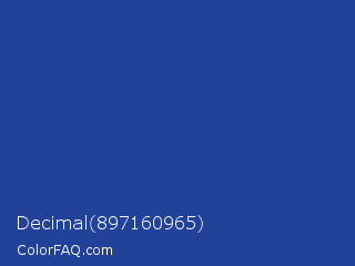 Decimal 897160965 Color is a normal blue color and the nearest color is Sapphire #2f519e. Hex code #224299 and RGB value is rgb(34,66,153). In RGB color space, this color is composed of 13% red, 26% green, 60% blue, In CMYK color space, this color is composed of 78% cyan, 57% magenta, 0% yellow , 40% black , In HSL color space, this color has a hue angle of 224° , 64% saturation and 37% lightness.