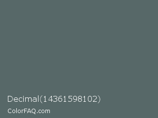 Decimal 14361598102 Color is a normal cyan color and the nearest color is Stormcloud #4f666a. Hex code #576868 and RGB value is rgb(87,104,104). In RGB color space, this color is composed of 34% red, 41% green, 41% blue, In CMYK color space, this color is composed of 16% cyan, 0% magenta, 0% yellow , 59% black , In HSL color space, this color has a hue angle of 180° , 9% saturation and 37% lightness.