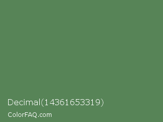 Decimal 14361653319 Color is a normal green color and the nearest color is Spring Leaves #578363. Hex code #578457 and RGB value is rgb(87,132,87). In RGB color space, this color is composed of 34% red, 52% green, 34% blue, In CMYK color space, this color is composed of 34% cyan, 0% magenta, 34% yellow , 48% black , In HSL color space, this color has a hue angle of 120° , 21% saturation and 43% lightness.