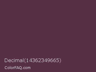 Decimal 14362349665 Color is a dark rose color and the nearest color is Wine Dregs #673147. Hex code #583045 and RGB value is rgb(88,48,69). In RGB color space, this color is composed of 35% red, 19% green, 27% blue, In CMYK color space, this color is composed of 0% cyan, 45% magenta, 22% yellow , 65% black , In HSL color space, this color has a hue angle of 329° , 29% saturation and 27% lightness.