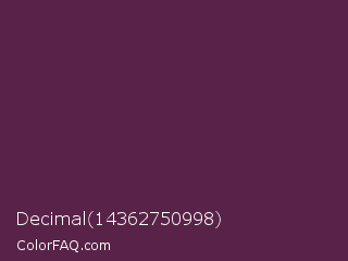 Decimal 14362750998 Color is a dark magenta color and the nearest color is Tawny Port #692545. Hex code #592248 and RGB value is rgb(89,34,72). In RGB color space, this color is composed of 35% red, 13% green, 28% blue, In CMYK color space, this color is composed of 0% cyan, 62% magenta, 19% yellow , 65% black , In HSL color space, this color has a hue angle of 319° , 45% saturation and 24% lightness.
