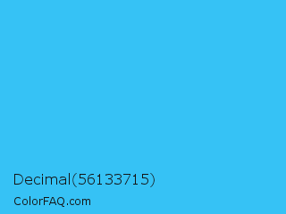 Decimal 56133715 Color is a normal blue color and the nearest color is Picton Blue #45b1e8. Hex code #36c2f5 and RGB value is rgb(54,194,245). In RGB color space, this color is composed of 21% red, 76% green, 96% blue, In CMYK color space, this color is composed of 78% cyan, 21% magenta, 0% yellow , 4% black , In HSL color space, this color has a hue angle of 196° , 91% saturation and 59% lightness.
