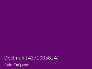 Decimal 14371005814 Color is a dark magenta color and the nearest color is Honey Flower #4f1c70. Hex code #650770 and RGB value is rgb(101,7,112). In RGB color space, this color is composed of 40% red, 3% green, 44% blue, In CMYK color space, this color is composed of 10% cyan, 94% magenta, 0% yellow , 56% black , In HSL color space, this color has a hue angle of 294° , 88% saturation and 23% lightness.