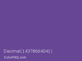Decimal 14378664041 Color is a normal violet color and the nearest color is Butterfly Bush #624e9a. Hex code #674795 and RGB value is rgb(103,71,149). In RGB color space, this color is composed of 40% red, 28% green, 58% blue, In CMYK color space, this color is composed of 31% cyan, 52% magenta, 0% yellow , 42% black , In HSL color space, this color has a hue angle of 265° , 35% saturation and 43% lightness.