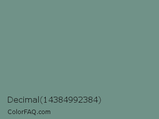 Decimal 14384992384 Color is a normal green color and the nearest color is Juniper #6d9292. Hex code #709288 and RGB value is rgb(112,146,136). In RGB color space, this color is composed of 44% red, 57% green, 53% blue, In CMYK color space, this color is composed of 23% cyan, 0% magenta, 7% yellow , 43% black , In HSL color space, this color has a hue angle of 162° , 13% saturation and 51% lightness.