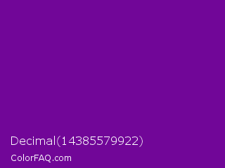 Decimal 14385579922 Color is a normal purple color and the nearest color is Purple #660099. Hex code #710698 and RGB value is rgb(113,6,152). In RGB color space, this color is composed of 44% red, 2% green, 60% blue, In CMYK color space, this color is composed of 26% cyan, 96% magenta, 0% yellow , 40% black , In HSL color space, this color has a hue angle of 284° , 92% saturation and 31% lightness.