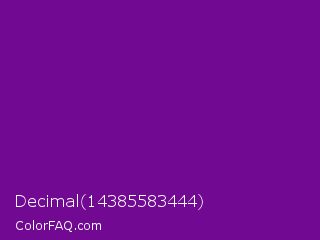 Decimal 14385583444 Color is a dark purple color and the nearest color is Purple #660099. Hex code #710992 and RGB value is rgb(113,9,146). In RGB color space, this color is composed of 44% red, 4% green, 57% blue, In CMYK color space, this color is composed of 23% cyan, 94% magenta, 0% yellow , 43% black , In HSL color space, this color has a hue angle of 286° , 88% saturation and 30% lightness.