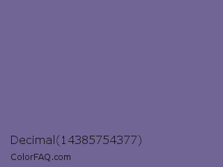 Decimal 14385754377 Color is a normal indigo color and the nearest color is Dark Blue Gray #666699. Hex code #716595 and RGB value is rgb(113,101,149). In RGB color space, this color is composed of 44% red, 40% green, 58% blue, In CMYK color space, this color is composed of 24% cyan, 32% magenta, 0% yellow , 42% black , In HSL color space, this color has a hue angle of 255° , 19% saturation and 49% lightness.