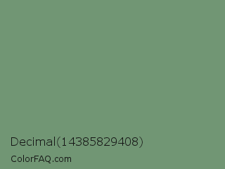 Decimal 14385829408 Color is a normal green color and the nearest color is Laurel #749378. Hex code #719674 and RGB value is rgb(113,150,116). In RGB color space, this color is composed of 44% red, 59% green, 45% blue, In CMYK color space, this color is composed of 25% cyan, 0% magenta, 23% yellow , 41% black , In HSL color space, this color has a hue angle of 125° , 15% saturation and 52% lightness.