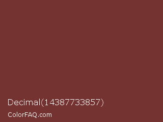 Decimal 14387733857 Color is a normal red color and the nearest color is Wine #722f37. Hex code #743231 and RGB value is rgb(116,50,49). In RGB color space, this color is composed of 45% red, 20% green, 19% blue, In CMYK color space, this color is composed of 0% cyan, 57% magenta, 58% yellow , 55% black , In HSL color space, this color has a hue angle of 1° , 41% saturation and 32% lightness.