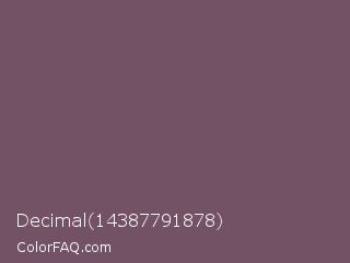 Decimal 14387791878 Color is a normal magenta color and the nearest color is Deep Taupe #7e5e60. Hex code #745266 and RGB value is rgb(116,82,102). In RGB color space, this color is composed of 45% red, 32% green, 40% blue, In CMYK color space, this color is composed of 0% cyan, 29% magenta, 12% yellow , 55% black , In HSL color space, this color has a hue angle of 325° , 17% saturation and 39% lightness.