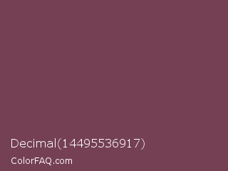 Decimal 14495536917 Color is a normal rose color and the nearest color is Cosmic #76395d. Hex code #754053 and RGB value is rgb(117,64,83). In RGB color space, this color is composed of 46% red, 25% green, 33% blue, In CMYK color space, this color is composed of 0% cyan, 45% magenta, 29% yellow , 54% black , In HSL color space, this color has a hue angle of 338° , 29% saturation and 35% lightness.