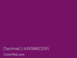 Decimal 14495880339 Color is a dark magenta color and the nearest color is French Plum #811453. Hex code #761265 and RGB value is rgb(118,18,101). In RGB color space, this color is composed of 46% red, 7% green, 40% blue, In CMYK color space, this color is composed of 0% cyan, 85% magenta, 14% yellow , 54% black , In HSL color space, this color has a hue angle of 310° , 74% saturation and 27% lightness.