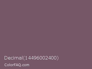 Decimal 14496002400 Color is a normal magenta color and the nearest color is Deep Taupe #7e5e60. Hex code #765768 and RGB value is rgb(118,87,104). In RGB color space, this color is composed of 46% red, 34% green, 41% blue, In CMYK color space, this color is composed of 0% cyan, 26% magenta, 12% yellow , 54% black , In HSL color space, this color has a hue angle of 327° , 15% saturation and 40% lightness.