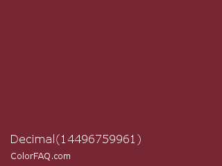 Decimal 14496759961 Color is a normal red color and the nearest color is Wine #722f37. Hex code #772633 and RGB value is rgb(119,38,51). In RGB color space, this color is composed of 47% red, 15% green, 20% blue, In CMYK color space, this color is composed of 0% cyan, 68% magenta, 57% yellow , 53% black , In HSL color space, this color has a hue angle of 350° , 52% saturation and 31% lightness.
