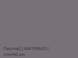 Decimal 14497696001 Color is a normal magenta color and the nearest color is Sonic Silver #757575. Hex code #787175 and RGB value is rgb(120,113,117). In RGB color space, this color is composed of 47% red, 44% green, 46% blue, In CMYK color space, this color is composed of 0% cyan, 6% magenta, 3% yellow , 53% black , In HSL color space, this color has a hue angle of 326° , 3% saturation and 46% lightness.