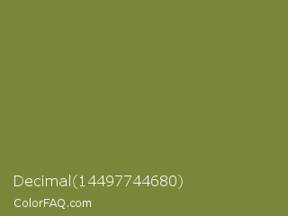 Decimal 14497744680 Color is a normal lime color and the nearest color is Old Moss Green #867e36. Hex code #788838 and RGB value is rgb(120,136,56). In RGB color space, this color is composed of 47% red, 53% green, 22% blue, In CMYK color space, this color is composed of 12% cyan, 0% magenta, 59% yellow , 47% black , In HSL color space, this color has a hue angle of 72° , 42% saturation and 38% lightness.