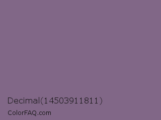 Decimal 14503911811 Color is a normal purple color and the nearest color is Chinese Violet #856088. Hex code #816787 and RGB value is rgb(129,103,135). In RGB color space, this color is composed of 51% red, 40% green, 53% blue, In CMYK color space, this color is composed of 4% cyan, 24% magenta, 0% yellow , 47% black , In HSL color space, this color has a hue angle of 289° , 13% saturation and 47% lightness.