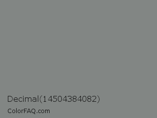 Decimal 14504384082 Color is a normal green color and the nearest color is Gunsmoke #828685. Hex code #828684 and RGB value is rgb(130,134,132). In RGB color space, this color is composed of 51% red, 53% green, 52% blue, In CMYK color space, this color is composed of 3% cyan, 0% magenta, 1% yellow , 47% black , In HSL color space, this color has a hue angle of 150° , 2% saturation and 52% lightness.