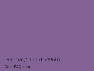 Decimal 14505154960 Color is a normal purple color and the nearest color is French Lilac #86608e. Hex code #836296 and RGB value is rgb(131,98,150). In RGB color space, this color is composed of 51% red, 38% green, 59% blue, In CMYK color space, this color is composed of 13% cyan, 35% magenta, 0% yellow , 41% black , In HSL color space, this color has a hue angle of 278° , 21% saturation and 49% lightness.