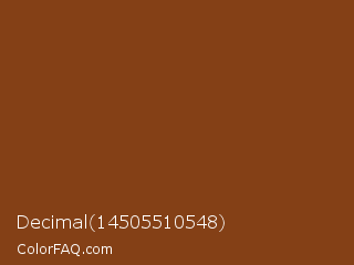 Decimal 14505510548 Color is a dark orange color and the nearest color is Copper Canyon #7e3a15. Hex code #844016 and RGB value is rgb(132,64,22). In RGB color space, this color is composed of 52% red, 25% green, 9% blue, In CMYK color space, this color is composed of 0% cyan, 52% magenta, 83% yellow , 48% black , In HSL color space, this color has a hue angle of 23° , 71% saturation and 30% lightness.