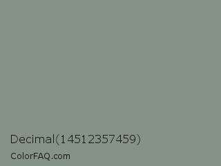 Decimal 14512357459 Color is a normal green color and the nearest color is Dolphin Gray #828e84. Hex code #849385 and RGB value is rgb(132,147,133). In RGB color space, this color is composed of 52% red, 58% green, 52% blue, In CMYK color space, this color is composed of 10% cyan, 0% magenta, 10% yellow , 42% black , In HSL color space, this color has a hue angle of 124° , 6% saturation and 55% lightness.
