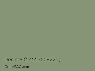 Decimal 14513608225 Color is a normal green color and the nearest color is Battleship Gray #828f72. Hex code #869575 and RGB value is rgb(134,149,117). In RGB color space, this color is composed of 53% red, 58% green, 46% blue, In CMYK color space, this color is composed of 10% cyan, 0% magenta, 21% yellow , 42% black , In HSL color space, this color has a hue angle of 88° , 13% saturation and 52% lightness.