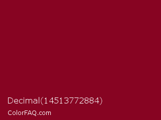 Decimal 14513772884 Color is a dark red color and the nearest color is Monarch #8b0723. Hex code #870422 and RGB value is rgb(135,4,34). In RGB color space, this color is composed of 53% red, 2% green, 13% blue, In CMYK color space, this color is composed of 0% cyan, 97% magenta, 75% yellow , 47% black , In HSL color space, this color has a hue angle of 346° , 94% saturation and 27% lightness.