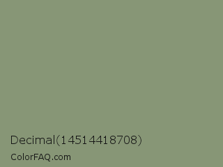 Decimal 14514418708 Color is a normal green color and the nearest color is Artichoke #8f9779. Hex code #879676 and RGB value is rgb(135,150,118). In RGB color space, this color is composed of 53% red, 59% green, 46% blue, In CMYK color space, this color is composed of 10% cyan, 0% magenta, 21% yellow , 41% black , In HSL color space, this color has a hue angle of 88° , 13% saturation and 53% lightness.