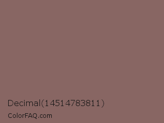 Decimal 14514783811 Color is a normal red color and the nearest color is Sand Dune #826f65. Hex code #886663 and RGB value is rgb(136,102,99). In RGB color space, this color is composed of 53% red, 40% green, 39% blue, In CMYK color space, this color is composed of 0% cyan, 25% magenta, 27% yellow , 47% black , In HSL color space, this color has a hue angle of 5° , 16% saturation and 46% lightness.