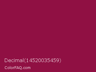 Decimal 14520035459 Color is a normal rose color and the nearest color is Disco #871550. Hex code #901043 and RGB value is rgb(144,16,67). In RGB color space, this color is composed of 56% red, 6% green, 26% blue, In CMYK color space, this color is composed of 0% cyan, 89% magenta, 53% yellow , 44% black , In HSL color space, this color has a hue angle of 336° , 80% saturation and 31% lightness.