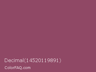 Decimal 14520119891 Color is a normal rose color and the nearest color is Twilight Lavender #8a496b. Hex code #904865 and RGB value is rgb(144,72,101). In RGB color space, this color is composed of 56% red, 28% green, 40% blue, In CMYK color space, this color is composed of 0% cyan, 50% magenta, 30% yellow , 44% black , In HSL color space, this color has a hue angle of 336° , 33% saturation and 42% lightness.