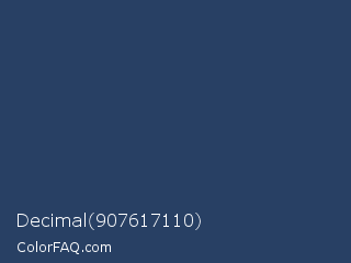 Decimal 907617110 Color is a dark blue color and the nearest color is Rhino #2e3f62. Hex code #284064 and RGB value is rgb(40,64,100). In RGB color space, this color is composed of 16% red, 25% green, 39% blue, In CMYK color space, this color is composed of 60% cyan, 36% magenta, 0% yellow , 61% black , In HSL color space, this color has a hue angle of 216° , 43% saturation and 27% lightness.
