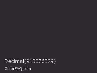 Decimal 913376329 Color is a very dark magenta color and the nearest color is Thunder #33292f. Hex code #302831 and RGB value is rgb(48,40,49). In RGB color space, this color is composed of 19% red, 16% green, 19% blue, In CMYK color space, this color is composed of 2% cyan, 18% magenta, 0% yellow , 81% black , In HSL color space, this color has a hue angle of 293° , 10% saturation and 17% lightness.