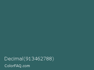 Decimal 913462788 Color is a dark cyan color and the nearest color is Casal #2f6168. Hex code #306364 and RGB value is rgb(48,99,100). In RGB color space, this color is composed of 19% red, 39% green, 39% blue, In CMYK color space, this color is composed of 52% cyan, 1% magenta, 0% yellow , 61% black , In HSL color space, this color has a hue angle of 181° , 35% saturation and 29% lightness.