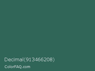 Decimal 913466208 Color is a dark cyan color and the nearest color is Stromboli #325d52. Hex code #306658 and RGB value is rgb(48,102,88). In RGB color space, this color is composed of 19% red, 40% green, 35% blue, In CMYK color space, this color is composed of 53% cyan, 0% magenta, 14% yellow , 60% black , In HSL color space, this color has a hue angle of 164° , 36% saturation and 29% lightness.