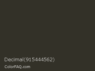 Decimal 915444562 Color is a very dark yellow color and the nearest color is Rangitoto #2e3222. Hex code #333128 and RGB value is rgb(51,49,40). In RGB color space, this color is composed of 20% red, 19% green, 16% blue, In CMYK color space, this color is composed of 0% cyan, 4% magenta, 22% yellow , 80% black , In HSL color space, this color has a hue angle of 49° , 12% saturation and 18% lightness.