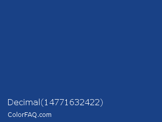 Decimal 14771632422 Color is a normal blue color and the nearest color is Bay Of Many #273a81. Hex code #194186 and RGB value is rgb(25,65,134). In RGB color space, this color is composed of 10% red, 25% green, 53% blue, In CMYK color space, this color is composed of 81% cyan, 51% magenta, 0% yellow , 47% black , In HSL color space, this color has a hue angle of 218° , 69% saturation and 31% lightness.