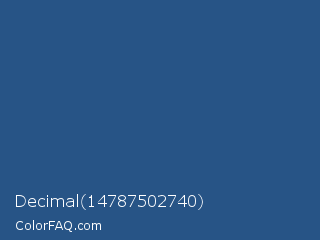 Decimal 14787502740 Color is a normal blue color and the nearest color is B Dazzled Blue #2e5894. Hex code #275486 and RGB value is rgb(39,84,134). In RGB color space, this color is composed of 15% red, 33% green, 53% blue, In CMYK color space, this color is composed of 71% cyan, 37% magenta, 0% yellow , 47% black , In HSL color space, this color has a hue angle of 212° , 55% saturation and 34% lightness.