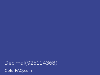 Decimal 925114368 Color is a normal blue color and the nearest color is Chambray #354e8c. Hex code #384490 and RGB value is rgb(56,68,144). In RGB color space, this color is composed of 22% red, 27% green, 56% blue, In CMYK color space, this color is composed of 61% cyan, 53% magenta, 0% yellow , 44% black , In HSL color space, this color has a hue angle of 232° , 44% saturation and 39% lightness.