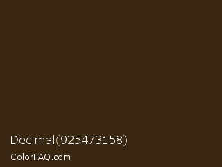 Decimal 925473158 Color is a very dark orange color and the nearest color is Brown Tumbleweed #37290e. Hex code #392712 and RGB value is rgb(57,39,18). In RGB color space, this color is composed of 22% red, 15% green, 7% blue, In CMYK color space, this color is composed of 0% cyan, 32% magenta, 68% yellow , 78% black , In HSL color space, this color has a hue angle of 32° , 52% saturation and 15% lightness.