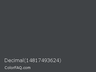 Decimal 14817493624 Color is a dark blue color and the nearest color is Cape Cod #3c4443. Hex code #404346 and RGB value is rgb(64,67,70). In RGB color space, this color is composed of 25% red, 26% green, 27% blue, In CMYK color space, this color is composed of 9% cyan, 4% magenta, 0% yellow , 73% black , In HSL color space, this color has a hue angle of 210° , 4% saturation and 26% lightness.