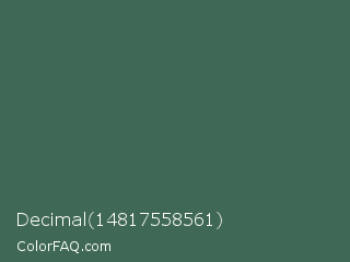 Decimal 14817558561 Color is a normal green color and the nearest color is Mineral Green #3f5d53. Hex code #406955 and RGB value is rgb(64,105,85). In RGB color space, this color is composed of 25% red, 41% green, 33% blue, In CMYK color space, this color is composed of 39% cyan, 0% magenta, 19% yellow , 59% black , In HSL color space, this color has a hue angle of 151° , 24% saturation and 33% lightness.
