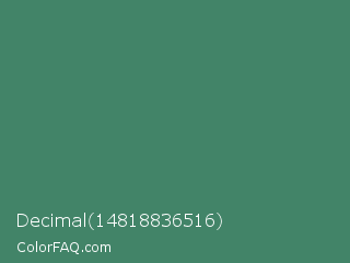 Decimal 14818836516 Color is a normal green color and the nearest color is Viridian #40826d. Hex code #428468 and RGB value is rgb(66,132,104). In RGB color space, this color is composed of 26% red, 52% green, 41% blue, In CMYK color space, this color is composed of 50% cyan, 0% magenta, 21% yellow , 48% black , In HSL color space, this color has a hue angle of 155° , 33% saturation and 39% lightness.