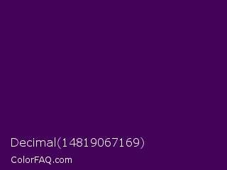 Decimal 14819067169 Color is a very dark purple color and the nearest color is Ripe Plum #410056. Hex code #430359 and RGB value is rgb(67,3,89). In RGB color space, this color is composed of 26% red, 1% green, 35% blue, In CMYK color space, this color is composed of 25% cyan, 97% magenta, 0% yellow , 65% black , In HSL color space, this color has a hue angle of 285° , 93% saturation and 18% lightness.