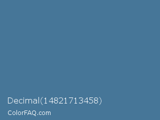 Decimal 14821713458 Color is a normal blue color and the nearest color is Queen Blue #436b95. Hex code #467698 and RGB value is rgb(70,118,152). In RGB color space, this color is composed of 27% red, 46% green, 60% blue, In CMYK color space, this color is composed of 54% cyan, 22% magenta, 0% yellow , 40% black , In HSL color space, this color has a hue angle of 205° , 37% saturation and 44% lightness.